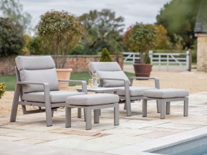 Life Outdoor Living Montana Duo Relaxer Set with Footstool & Gili Side Table – Lava & Soltex Graphite