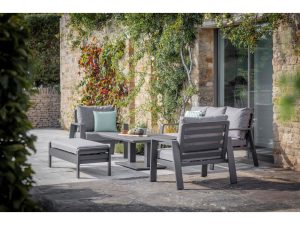 Bramblecrest Prague Square Sofa with Piston Adjustable Table & 2 Benches – Anthracite