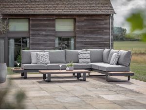 Bramblecrest San Marino Modular L-Shape Sofa with Large Rectangle Piston Ceramic Table Long Bench & Chair – Slate