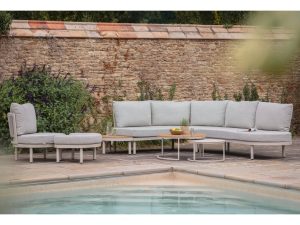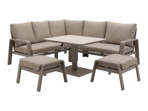 Bramblecrest Mauritius Modular Sofa with Square Ceramic Adjustable Casual Dining Table & 2 Benches – Eco Cobble