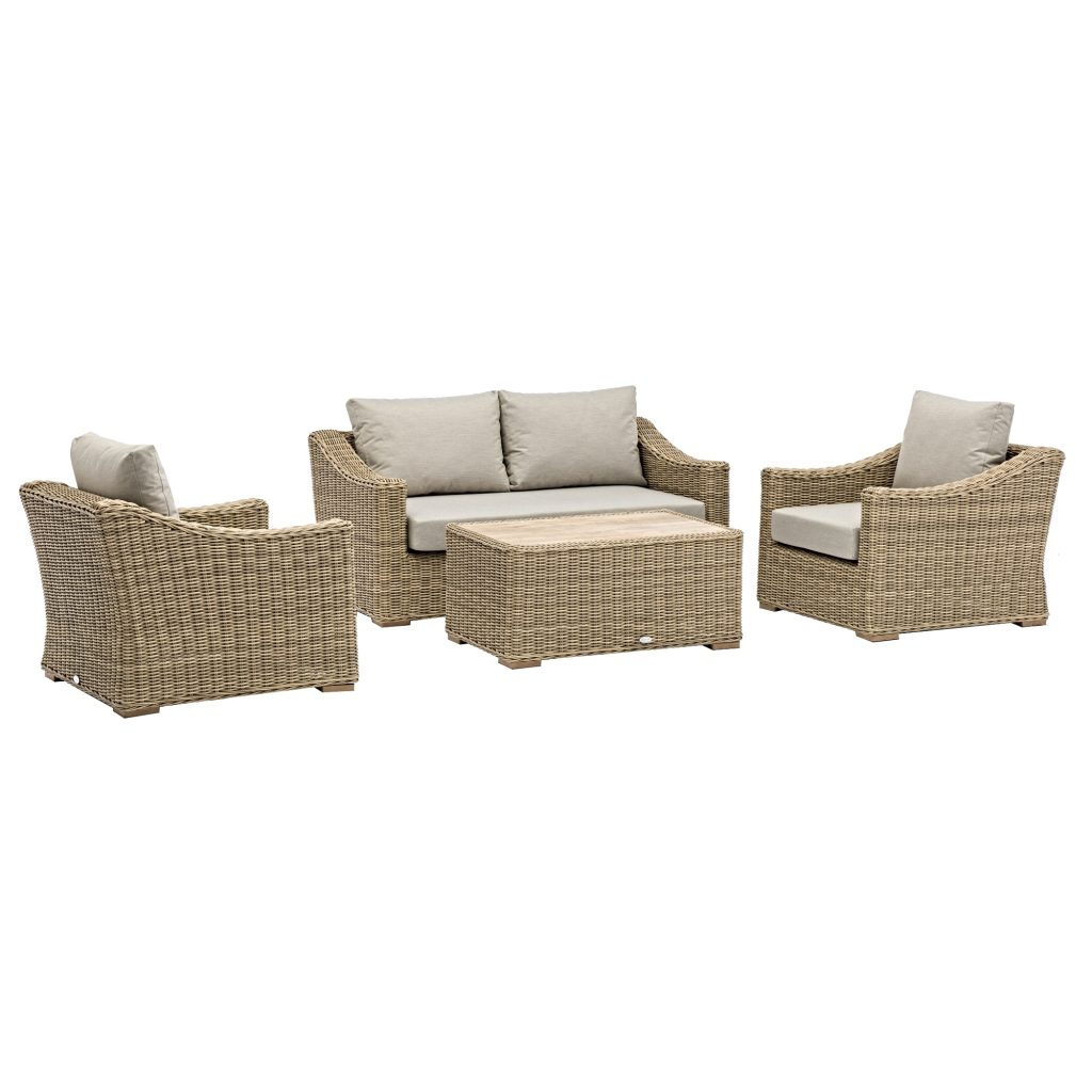 This set is ideal for smaller patios, terraces, or garden corners where space is limited but comfort is still a priority. The sofa and matching armchairs provide a balanced, sociable seating arrangement that works just as well for quiet mornings as it does for relaxed evenings outdoors.