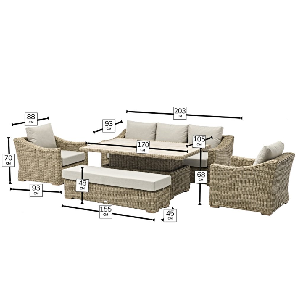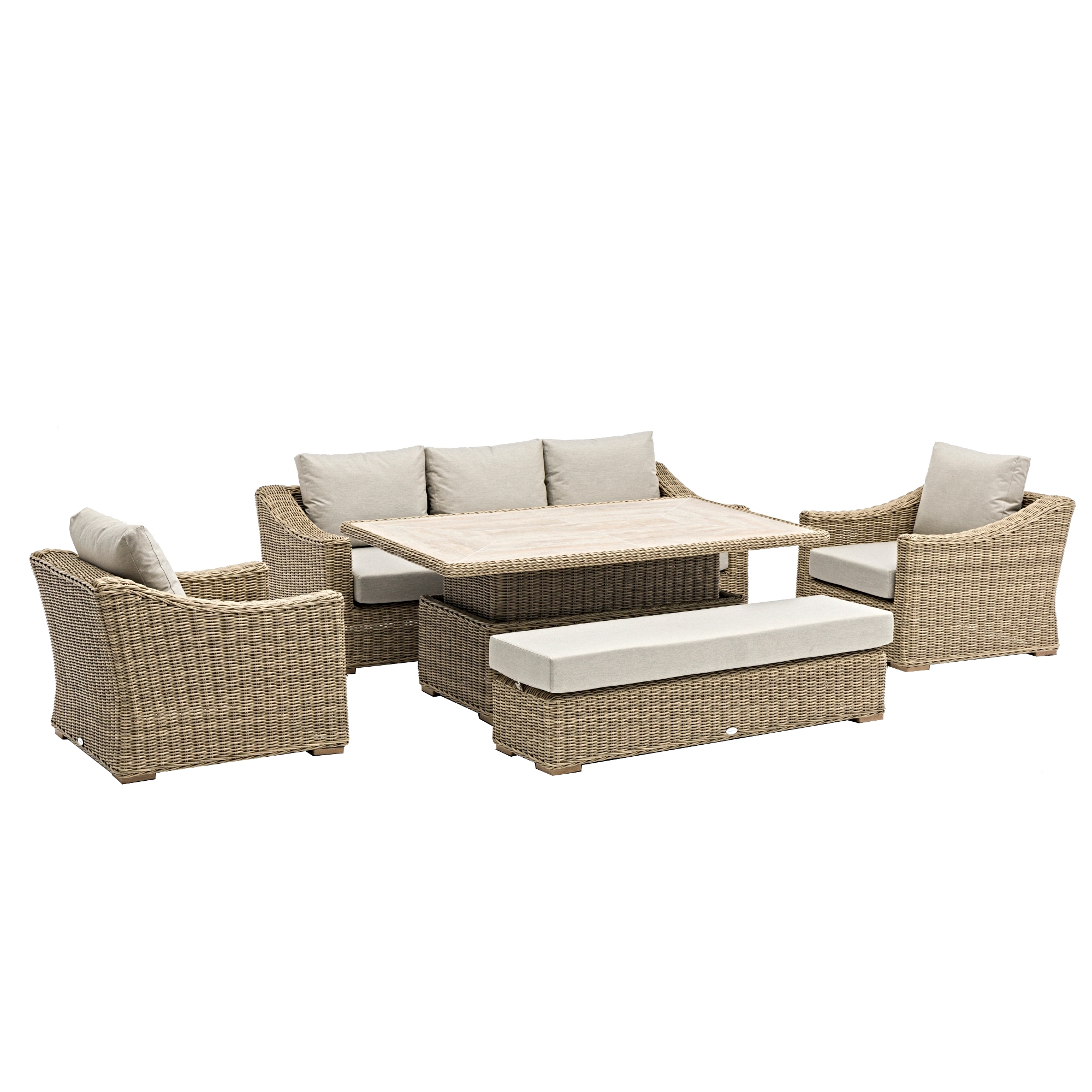 Bramblecrest Fairford 3 Seat Sofa with Rectangle Piston Table Bench & 2 Sofa Chairs