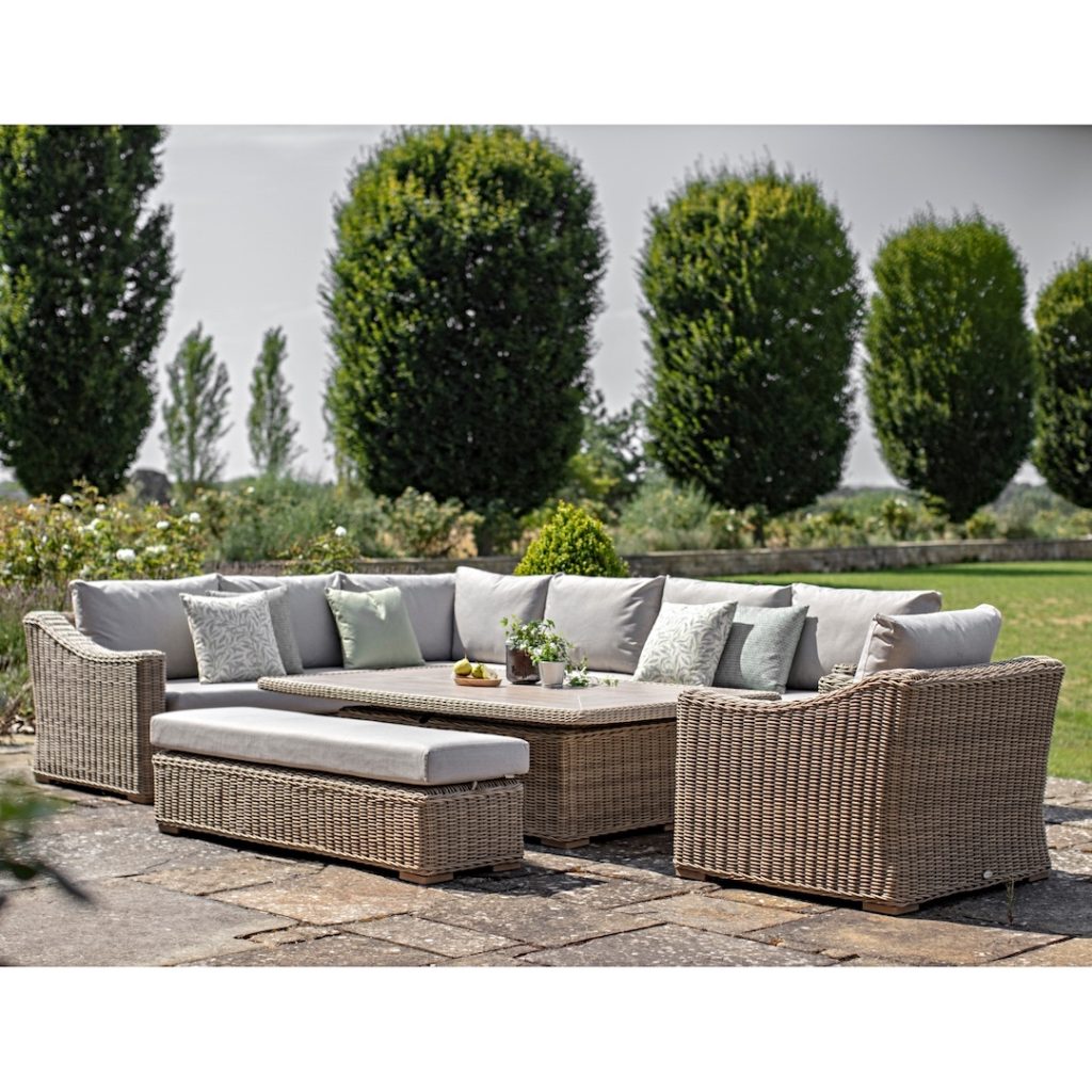 Fairford brings a fresh, modern twist to traditional rattan. With its wide-framed design and piston-operated adjustable table, it effortlessly adapts to any outdoor dining occasion.