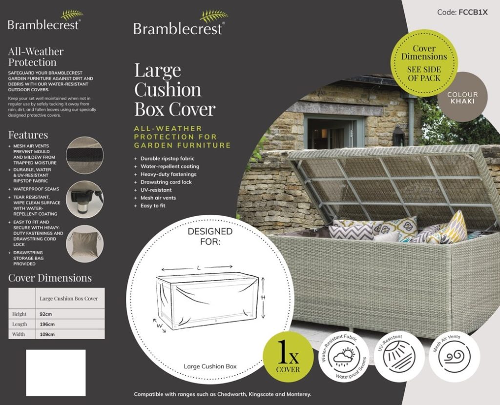 Cover for LARGE CUSHION BOX. Water-repellent outdoor covers made from durable ripstop fabric each cover is fitted with heavy duty fastenings to ensure a secure fit.