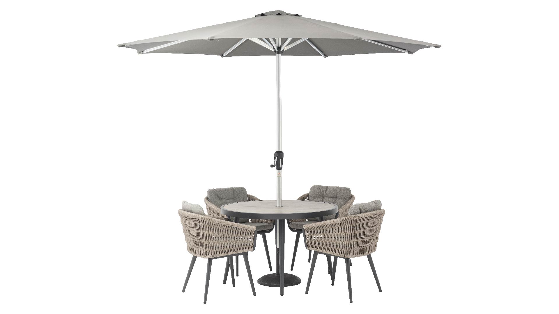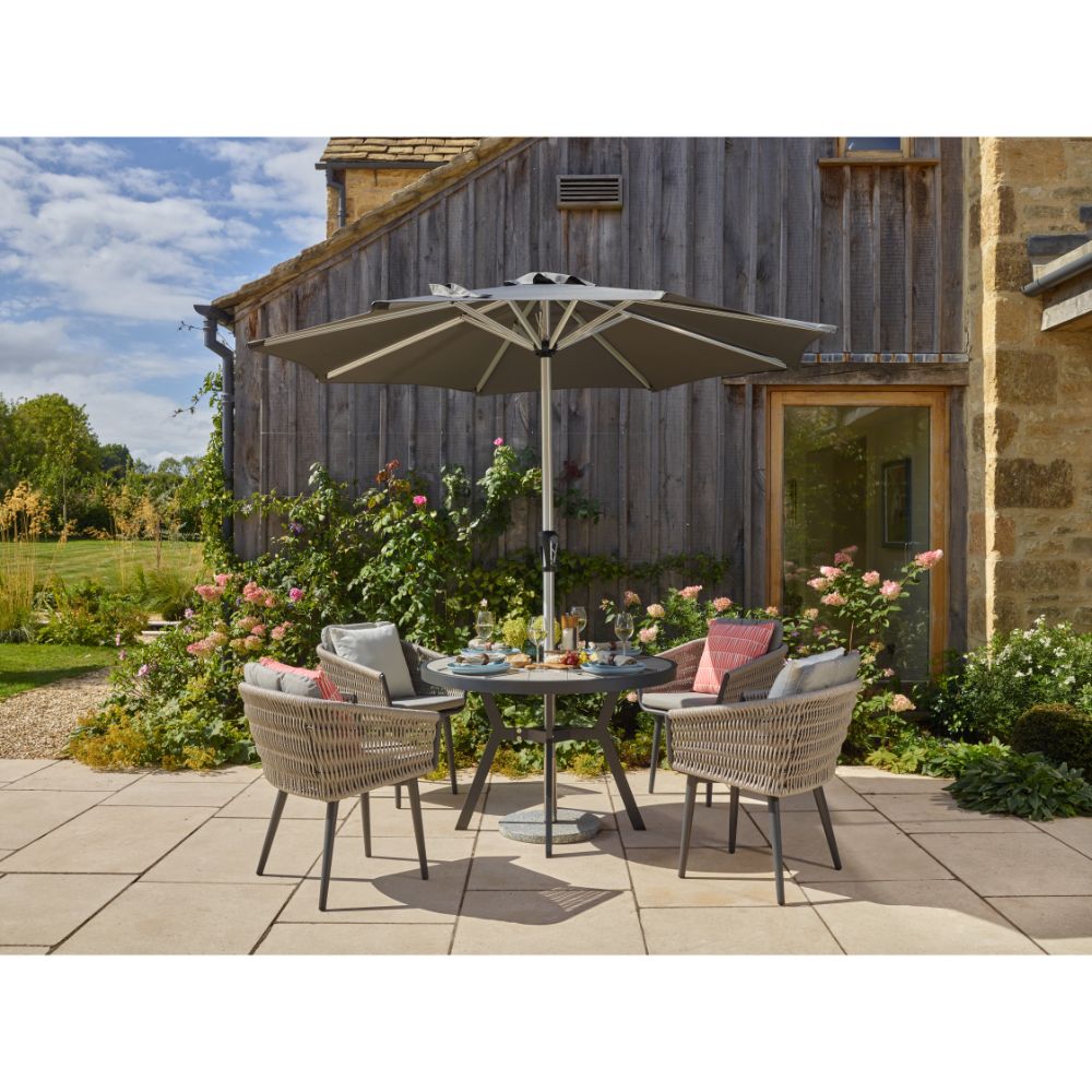 Bramblecrest Mauritius 110cm Round Dining Table with 4 Chairs Parasol & Base