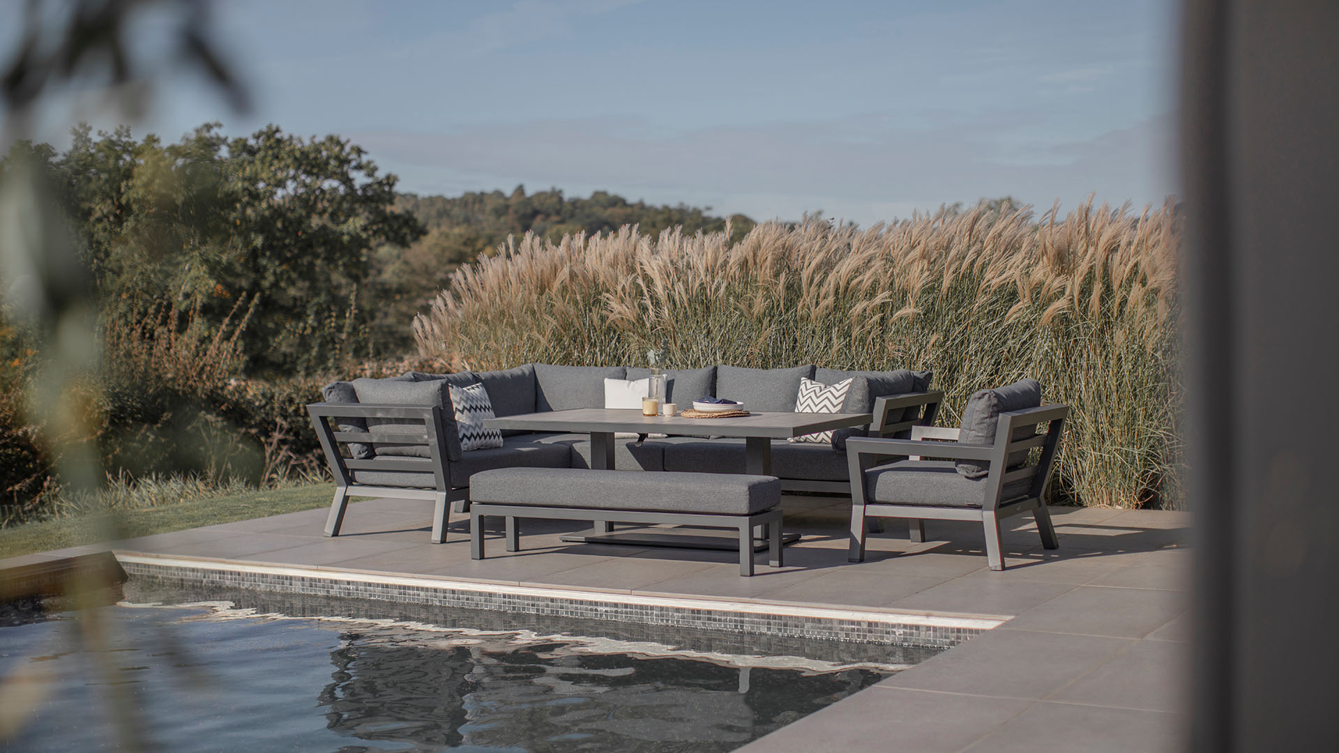 San Marino by Bramblecrest adds a distinctive, modern look to any outdoor space. It’s chunky aluminium (rust-free) frame, is lightweight, durable, and a breeze to clean.