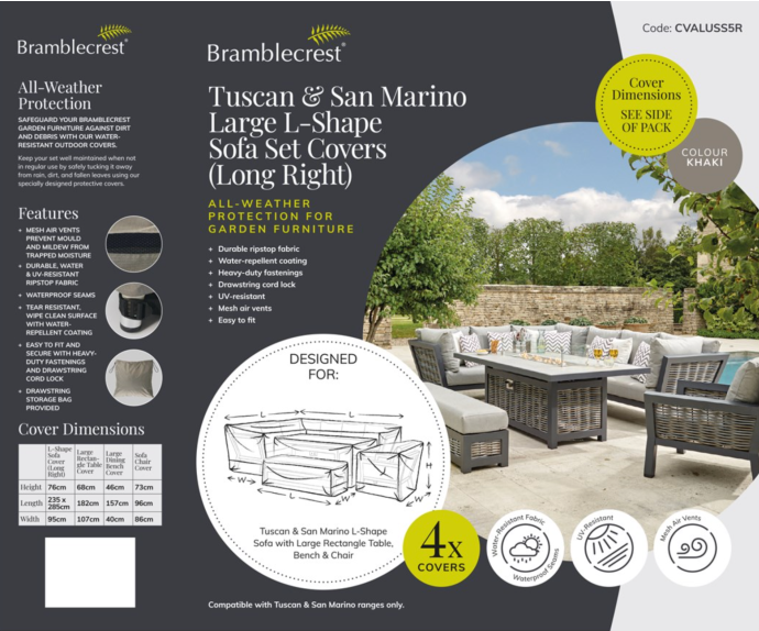 - Includes Season-Proof cushions backed with a waterproof liner to restrict water ingress